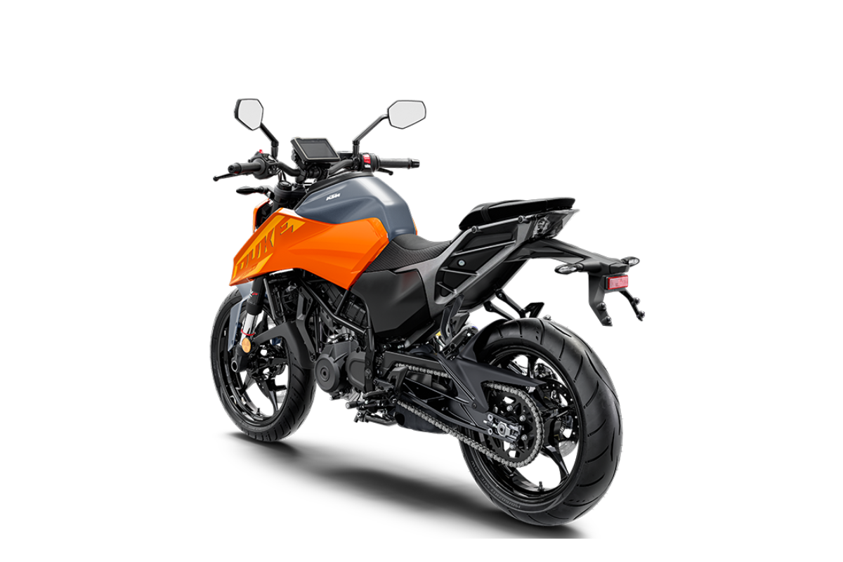 La KTM 250 Duke equipa orgullosa un nuevo propulsor de 250 cc, que entrega 31 caballos de fuerza: ¡esta máquina es 250% DUKE! Construida con el mismo carácter NAKED que sus hermanas mayores, la KTM 250 DUKE 2024 presume de una actitud totalmente nueva y musculosa, con un nuevo chasis, suspensiones, luces LED, tecnología de asistencia al pilotaje y una agresividad que arrasa en las calles y en las curvas.