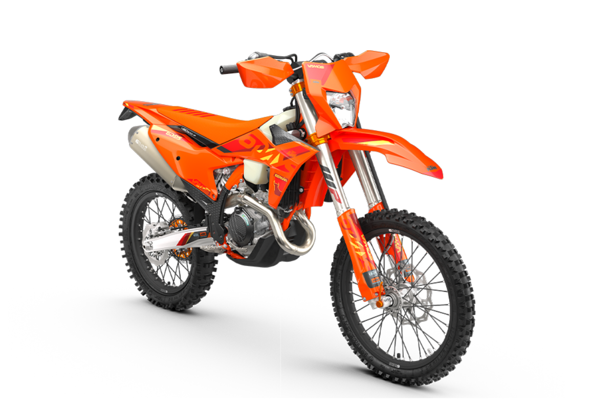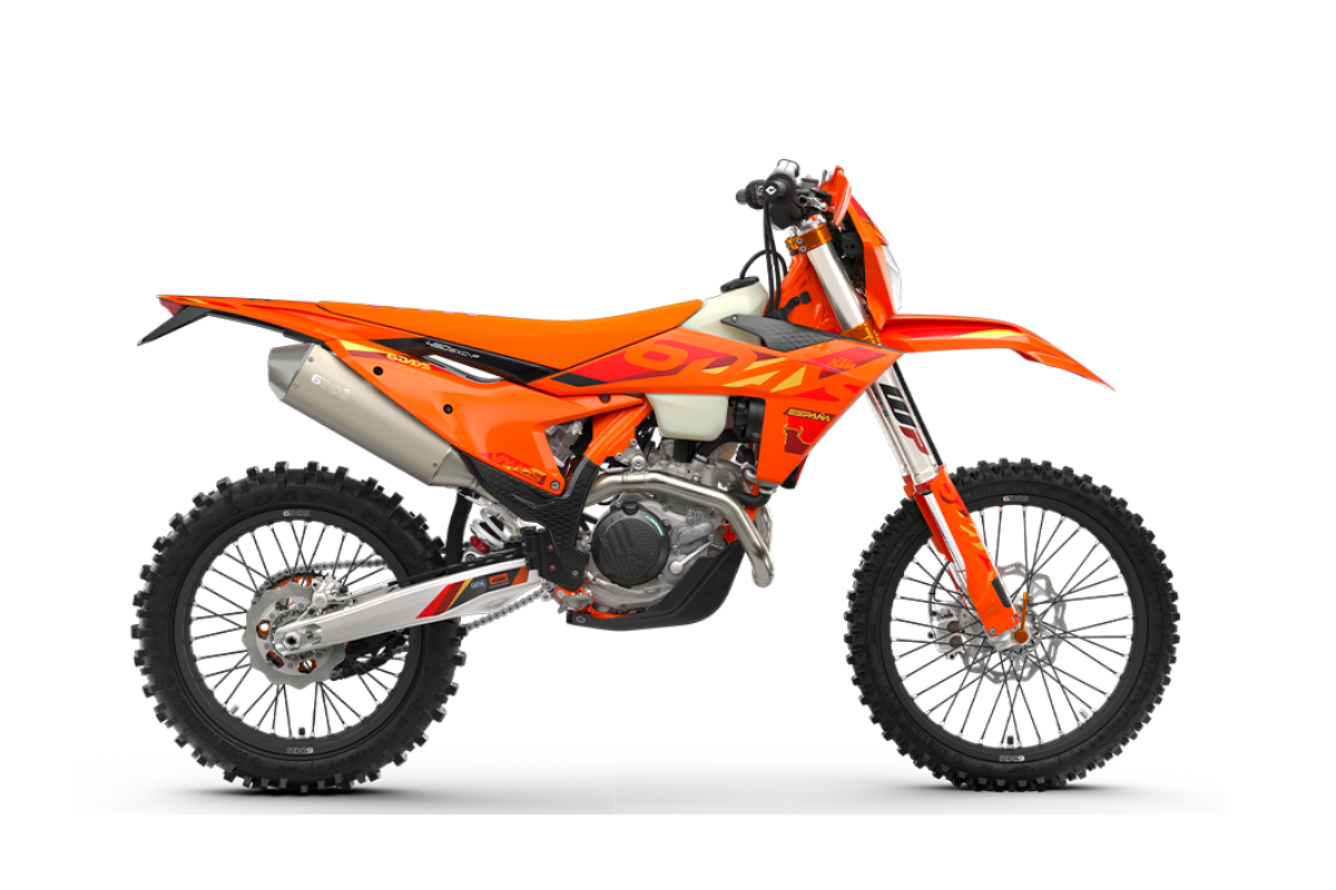 La KTM 450 EXC-F SIX DAYS necesita poca presentación en los círculos del enduro. Gran potencia, agilidad sin igual y un gran par motor sitúan a esta arma extrema de enduro READY TO RACE en la punta de lanza de cualquier batalla offroad. Para 2025, mantiene su pedigrí ganador de campeonatos con un chasis ligero, horquilla de cartucho cerrado y un arsenal de electrónica inteligente. -Los aspectos más destacados de la GAMA KTM EXC SIX DAYS 2025 son: